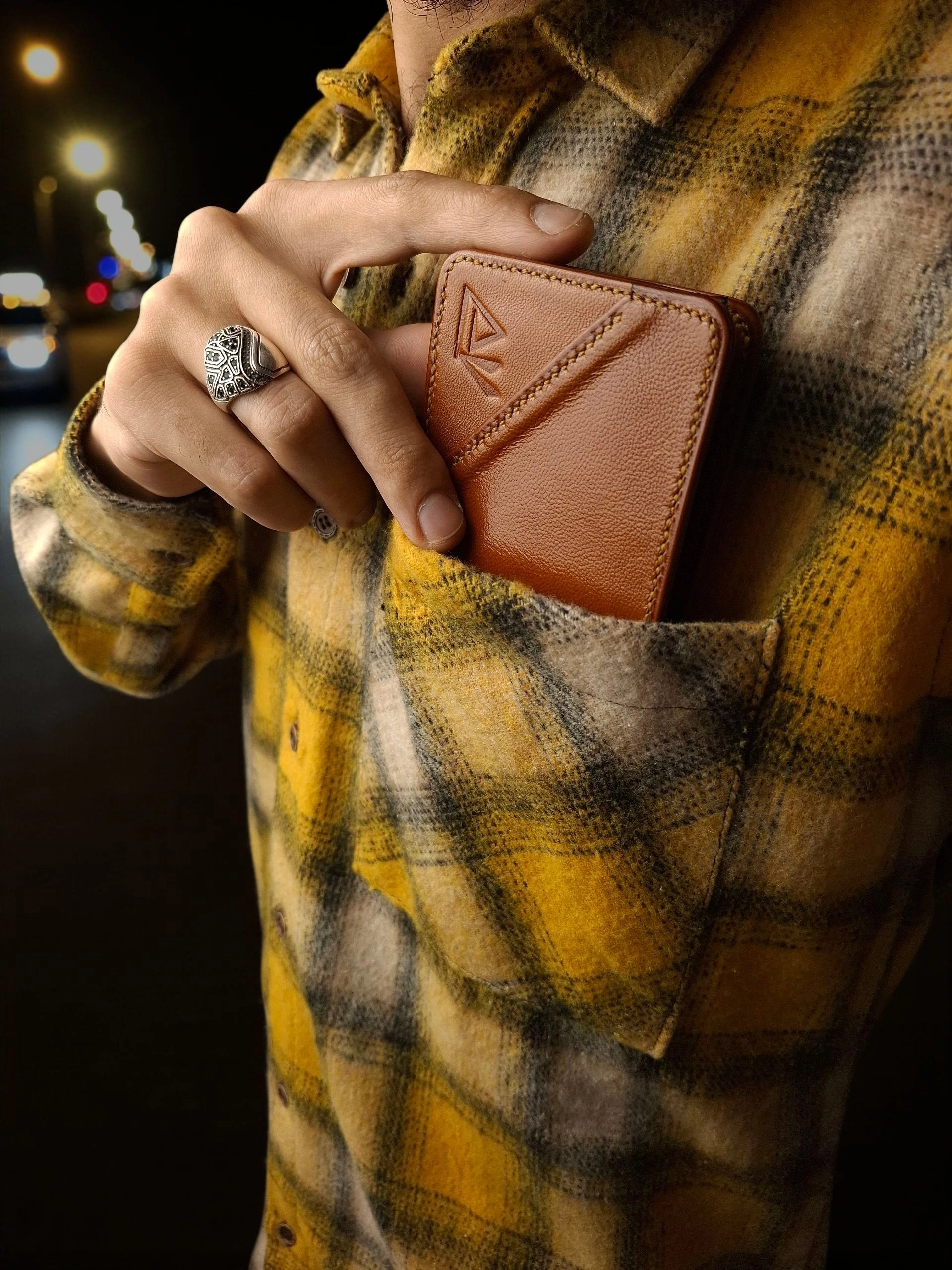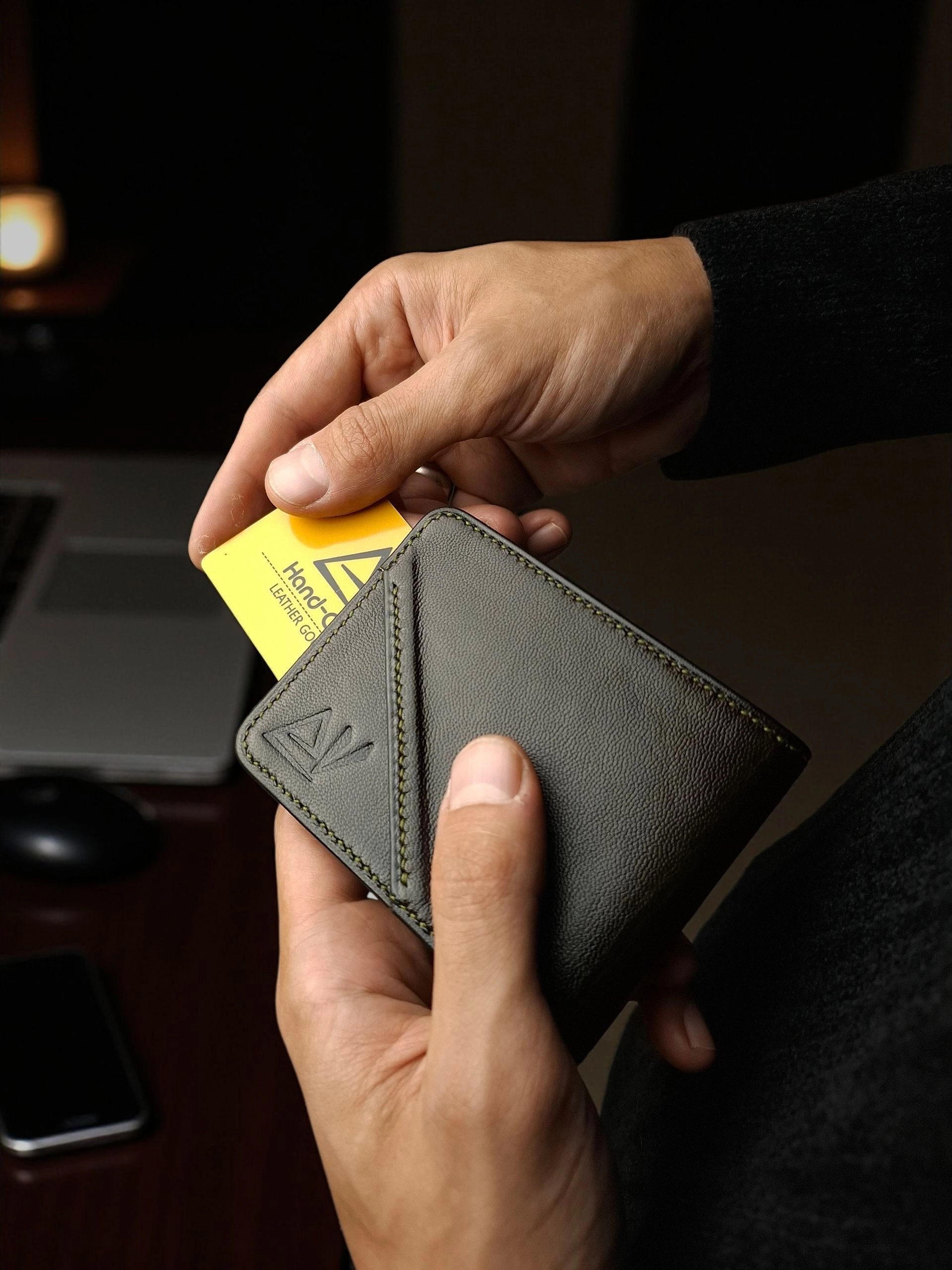 "الخياطة اليدوية هي العلامة الفارقة لكل قطعة فاخرة تُصنع بإتقان. كل غرزة تُنفَّذ بعناية دقيقة تمنح المنتج قوة استثنائية وتفاصيل لا يمكن للماكينات تكرارها. هذا الأسلوب يمنح كل قطعة شخصية خاصة ولمسة فنية تُشعرك بأن ما بين يديك عمل متقَن يتوارثه الزمن."