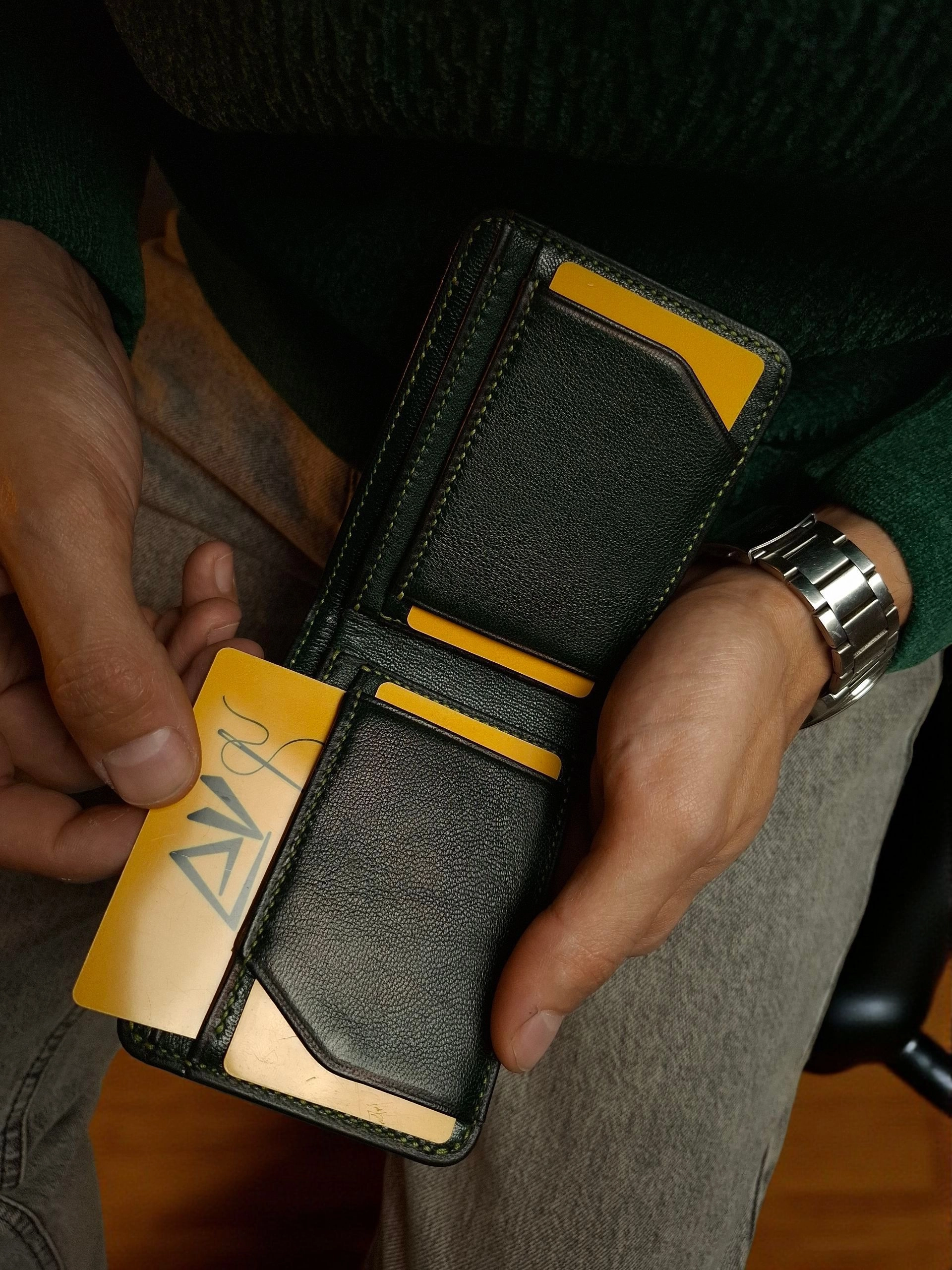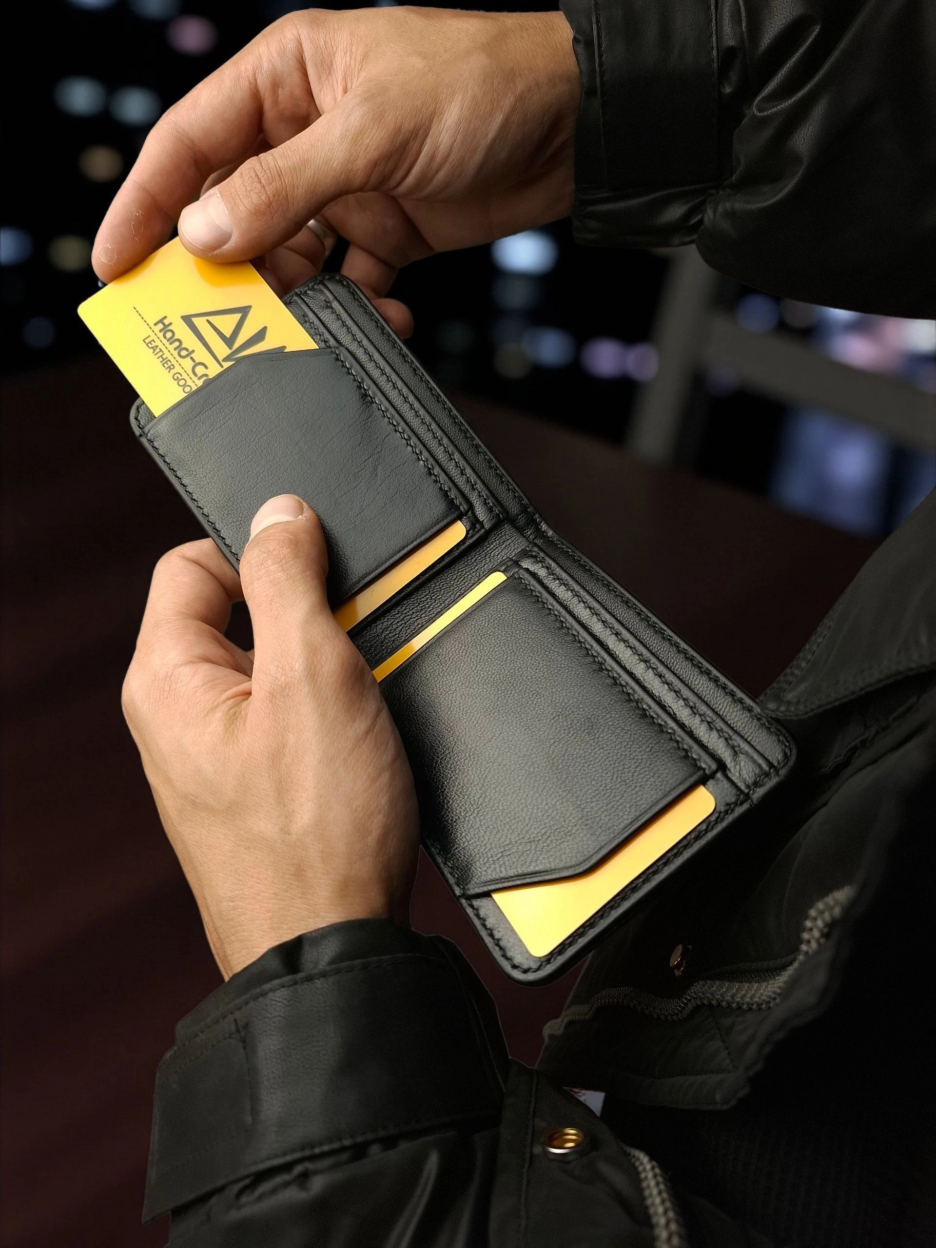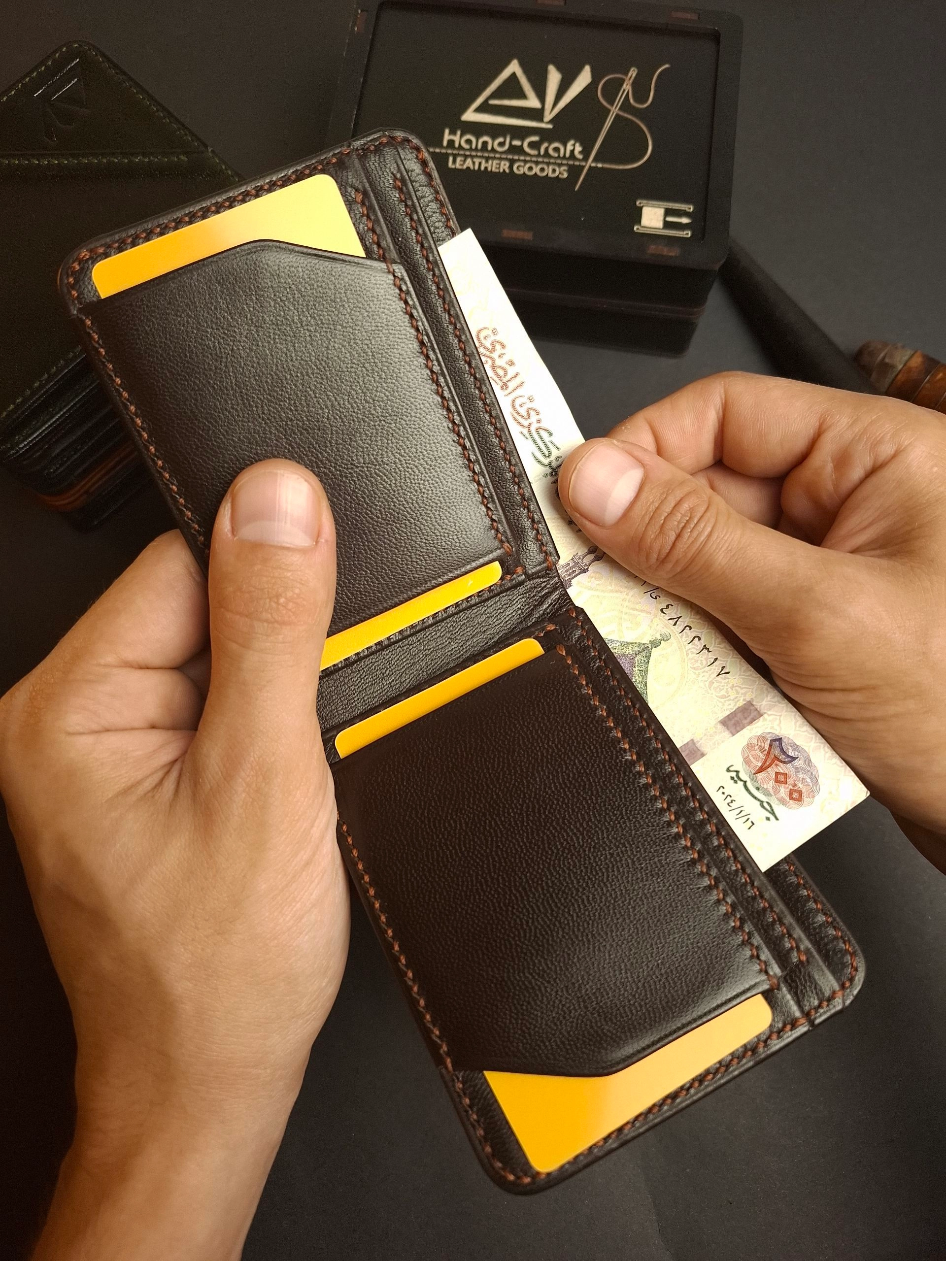 محفظة كلاسيكية فخمة من الجلد الطبيعي بصناعة وخياطة يدوية بالكامل . بتقدملك حلول عملية وخيارات مميزة لتقسيم الكروت والكاش باسهل واسرع وصول .